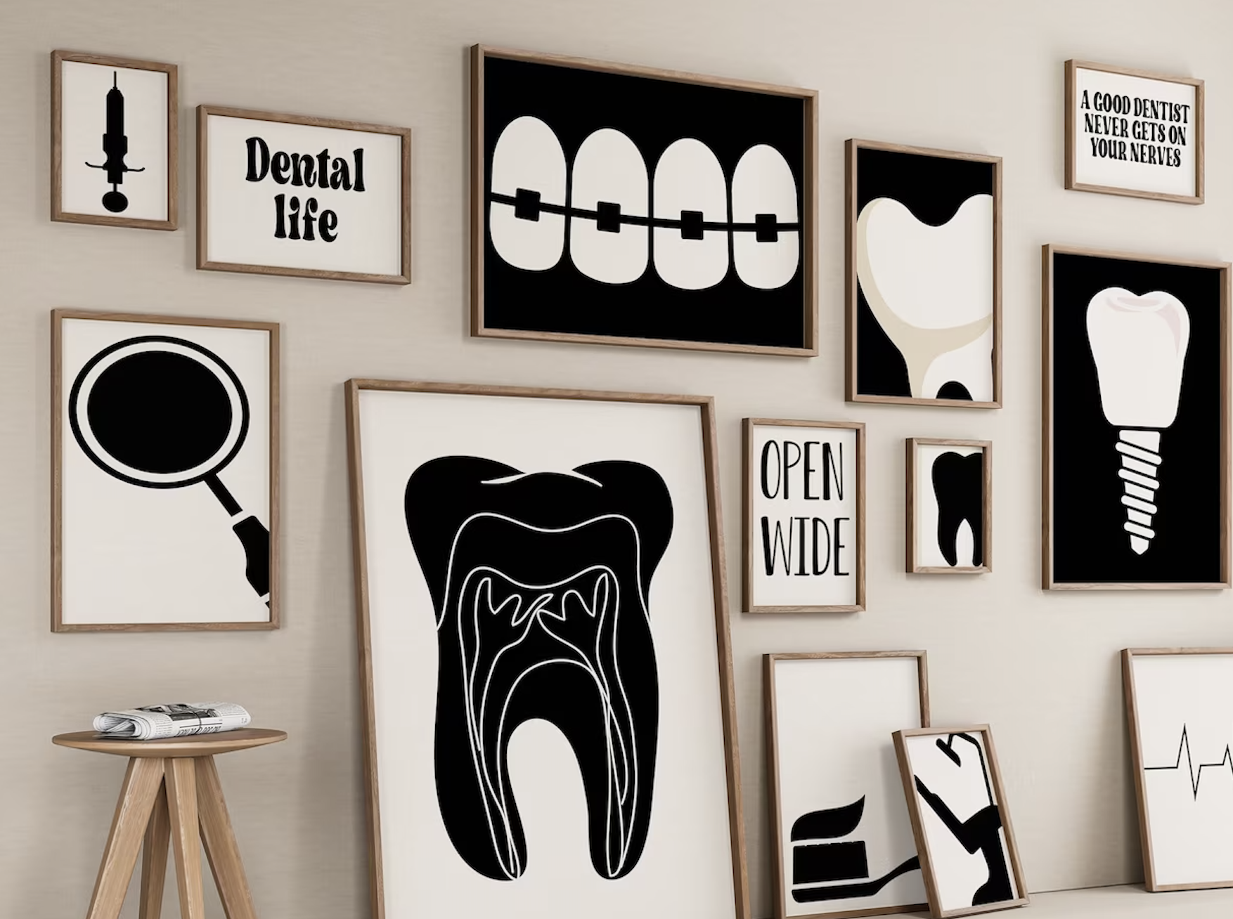 De TOOTHY poster collectie maakt jou omgeving een stuk sfeervoller. Het is leuk om verschillende formaten posters te combineren. Ideaal voor in een praktijk, kantoor of op je bureau.